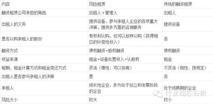 风险租赁与传统的融资租赁的比较