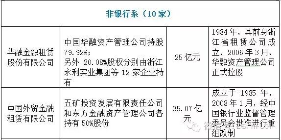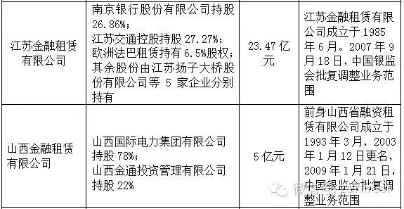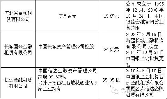 3、由于一些历史原因,2007前成立的一些带有"金融租赁公司"头衔的租赁公司,如恒信金融租赁公司、四川金融租赁公司、新世纪金融租赁有限责任公司、深圳金融租赁有限公司等,至今仍未顺利过渡到中国银监会监管序列。