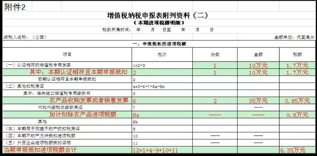 附表二:第8栏“其他”栏次调整为两栏,分别为“加计扣除农产品进项税额”和“其他”。
