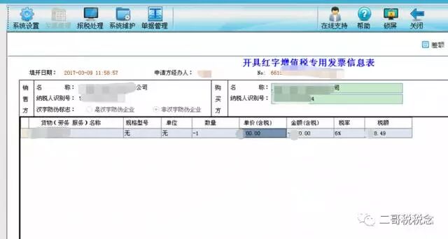 6、导入通知单,开具红字发票,右下角显示了通知单编码。