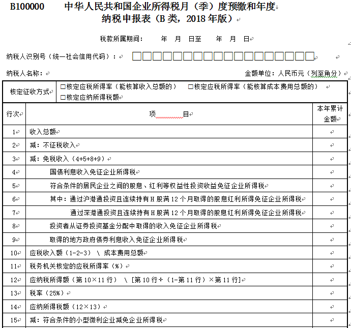 2.中华人民共和国企业所得税月(季)度预缴和年度纳税申报表(B类,2018年版)