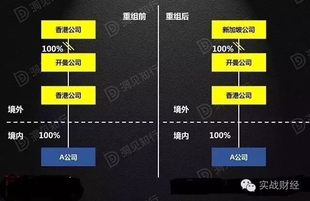 重组前,香港公司通过开曼公司及另一个香港控股公司间接持有中国居民企业A公司。香港公司将所持有开曼公司股权全部转让给新加坡公司。