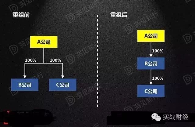 重组前,A公司同时持有B公司和C公司的全部股权。