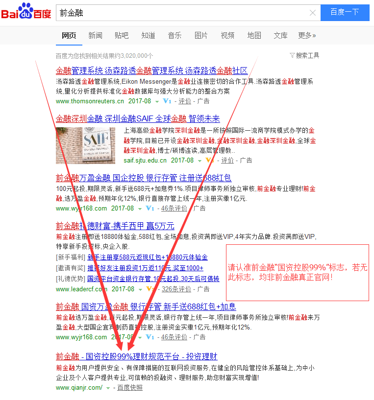 前金融在众多平台中脱颖而出,源于其实力国企99%绝对控股,国企背景使其在激烈的竞争中具备优势。再加上平台产品收益可观且期限短,是当之无愧的精美理财产品。其中,一月期限预期年化收益10%,三月期限预期年化收益达到12%,近期,平台的新手促销活动力度较大,通过百度搜索“前金融”,进入“前金融”唯一官网,注册投资福利更多,轻松赚取16%以上的综合年化收益(请记住,前金融官网左上方有“国资控股99%”字样)。在移动理财越来越流行的当前,前金融不甘人后,首次开通微信端理财服务,只需通过微信端搜索“前金融”微信公众号并关注,即可领取15元现金。微信端理财首投2000元,一个月之后可提现本息2061元,投资越多,赚取利息越多,福利相对越大。