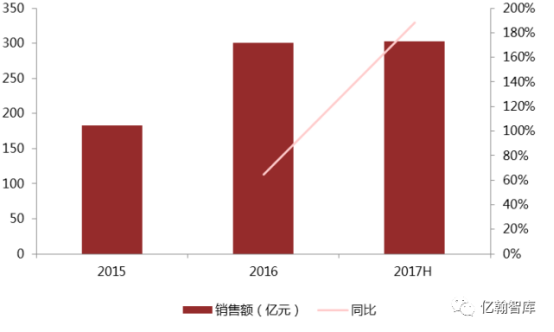 图表:2014-2017H营业收入(亿元)及其同比变动